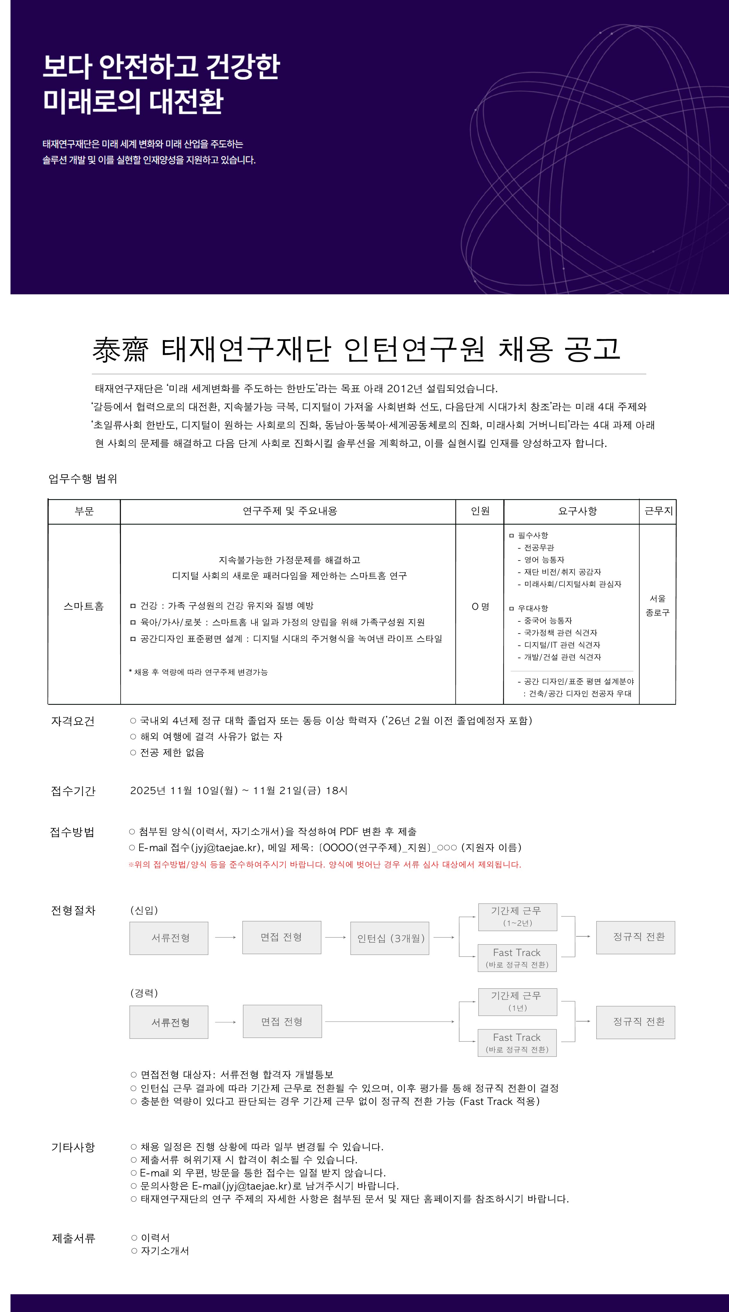 태재연구재단 인턴연구원 채용공고(미래주거)